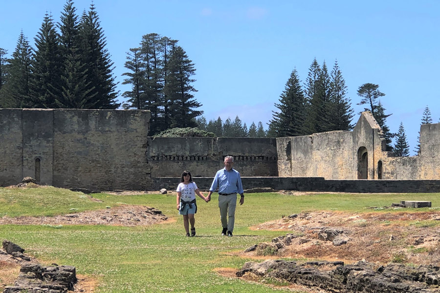 Native to the island, the evergreen Norfolk Island pine is a symbol of the island and is pictured on its flag. The pine is a key export for Norfolk Island, being a popular ornamental tree on mainland Australia (where two related species grow), and also worldwide.